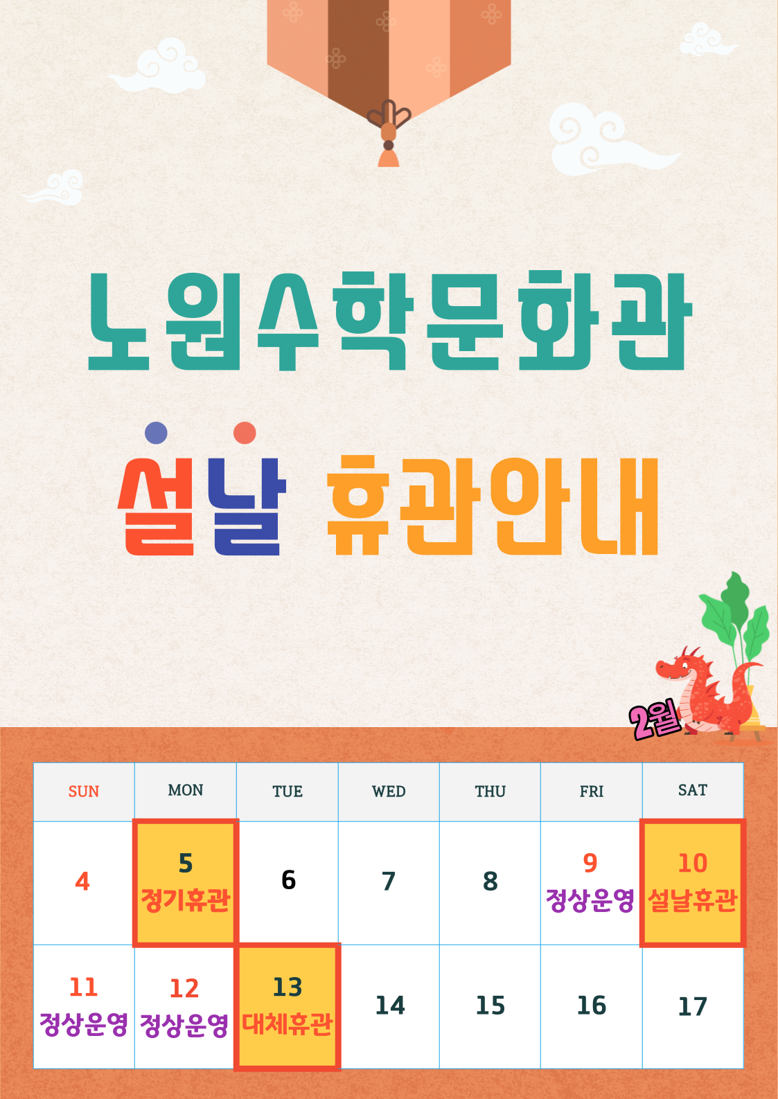 1월 1일, 설날(당일), 설날(당일)휴관