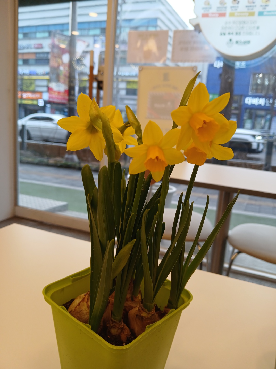 나는 수선화꽃을 주호는 바위솔을 샀다.