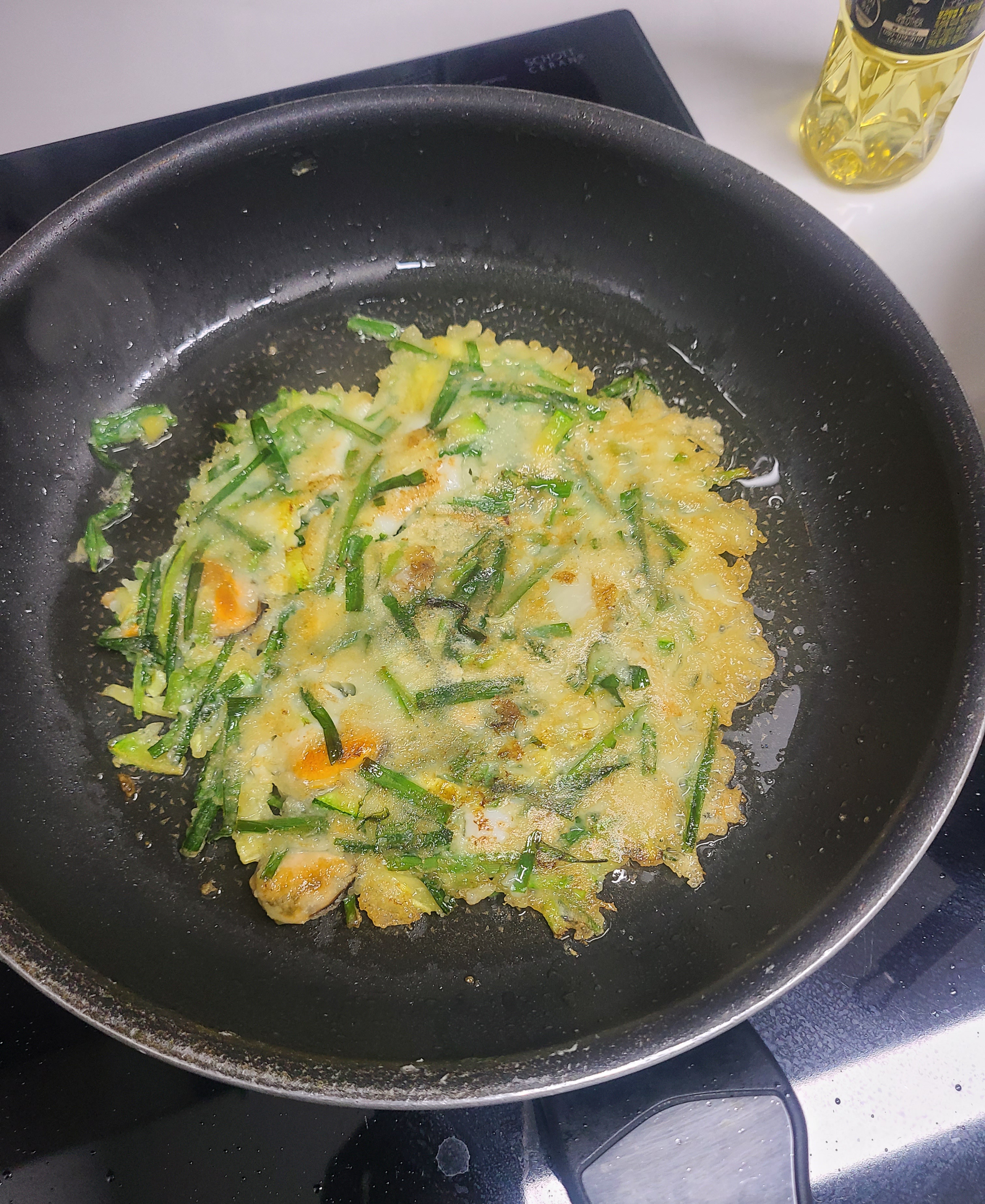 오늘 봄비도 오고 오징어 부추전을 했어요.