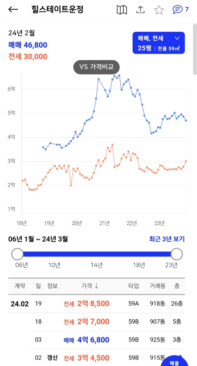 2024년 3월 2일자로 25평 매매가 4억 7000만원 합니다.