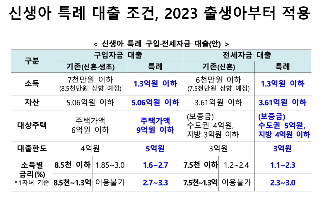 신생아 특례 대출 조건도 있네요.