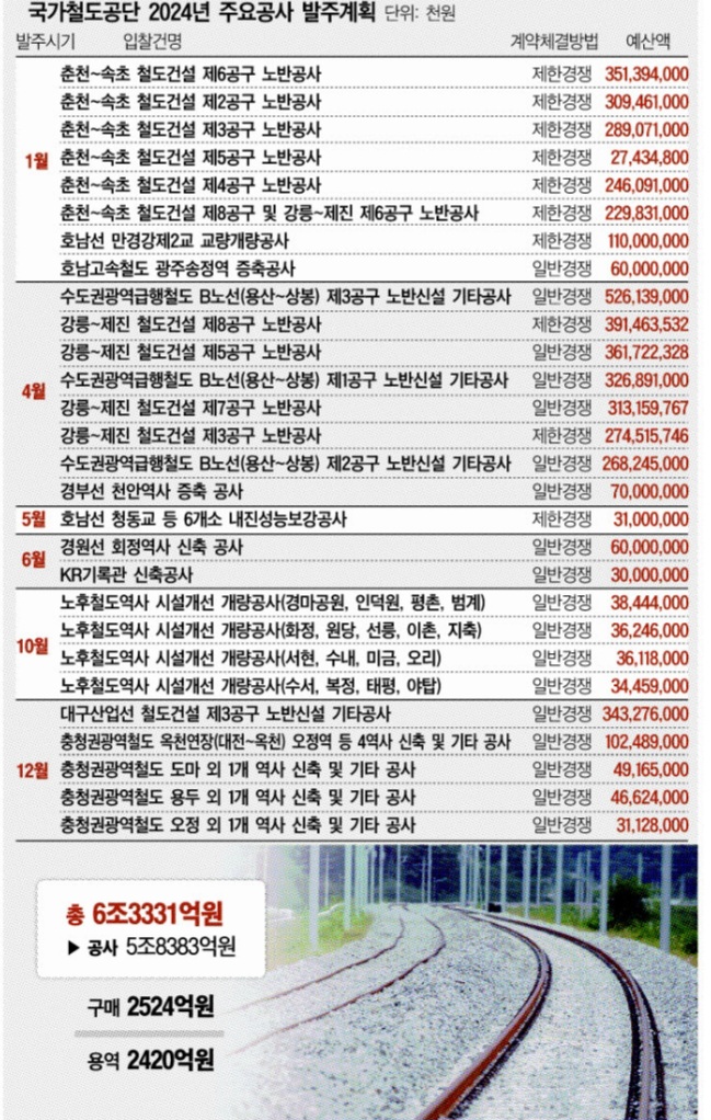 국가철도공단의 발주 내용 입니다. 이것도 참고해서 볼 필요가 있다고 봅니다.