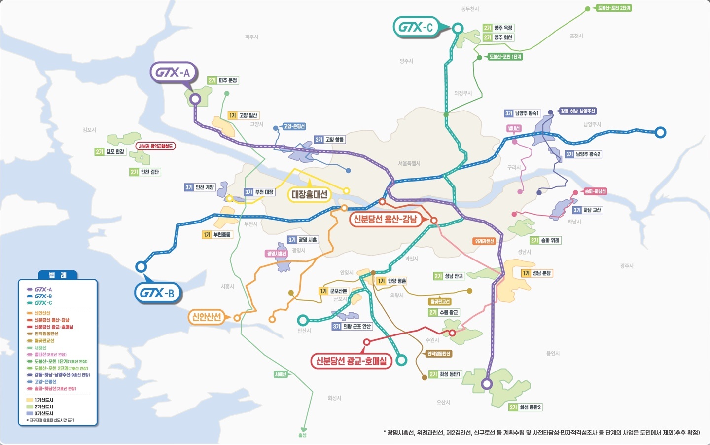 GTX노선과 지하철 연장노선만 표시된 지도입니다.