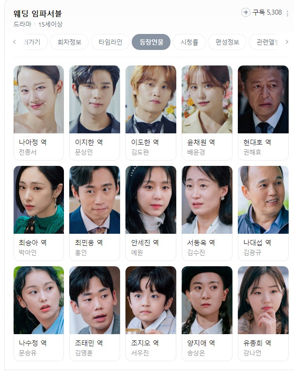 1. 웨딩 임파서블 등자인물