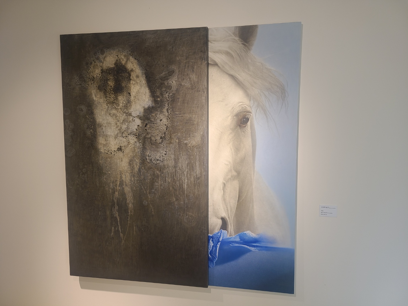 그림 자체는 극사실주의적 영향이 있어 말이나 사람들이 컴퓨터로 찍어 놓은 것처럼 정교하게 그린 거 같았다. 하지만 그림에 들어 있는 소재들은 시계, 말, 기차, 책 등등이 보이는데 각각의 소재들이 의미하는 것들이 다르다. 의미하는 봐는 초현실적인 내용이라고 한다. 작가가 의도 하는 의미를 알기엔 나의 지식이 부족하지만, 그래도 멋진 그림 작품을 만난 거 같아 흥분되고 기분이 좋았다.